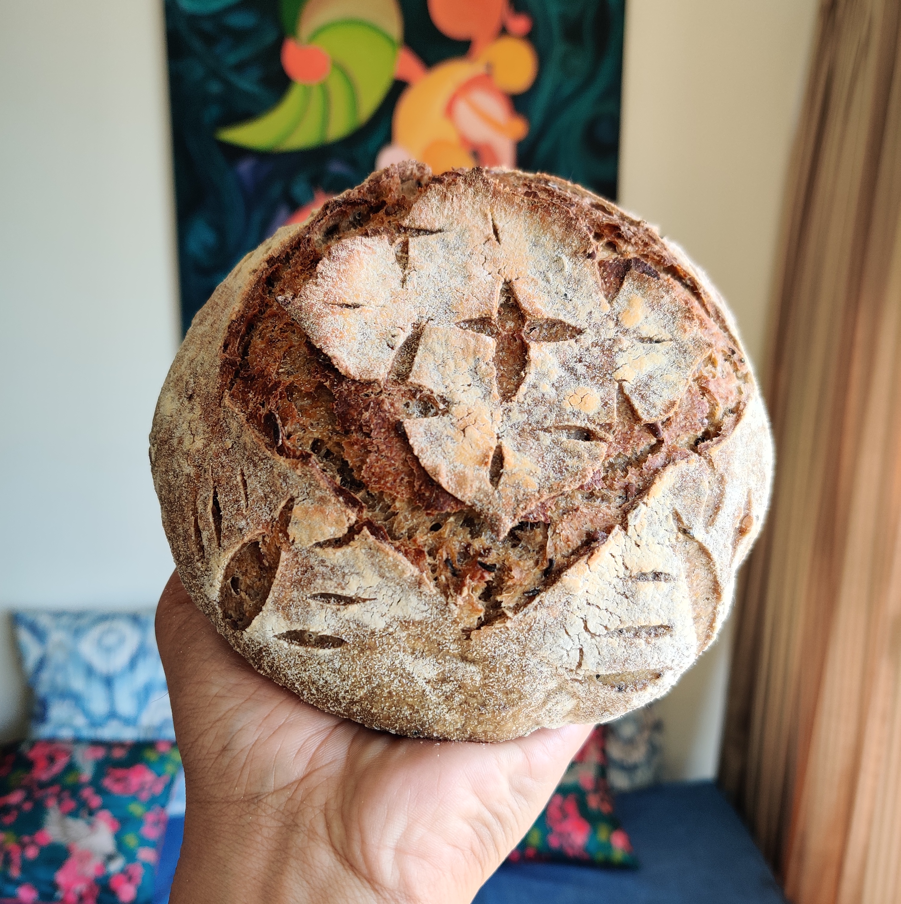 Sourdough uses only Flour+Salt+Water. Rest is passion, patience and skill to convert it into the most gut-friendly bread.
